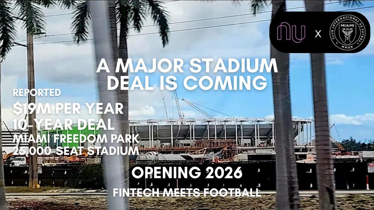 In a potential landmark move blending fintech and fútbol, Brazilian digital banking powerhouse Nubank is reportedly nearing an agreement to acquire the naming rights to Inter Miami CF’s soon-to-open stadium at Miami Freedom Park. At a rumored US $19 million per year over 10 years, the deal — if finalized — could become one of the largest fintech-sports venue naming rights agreements outside Brazil.