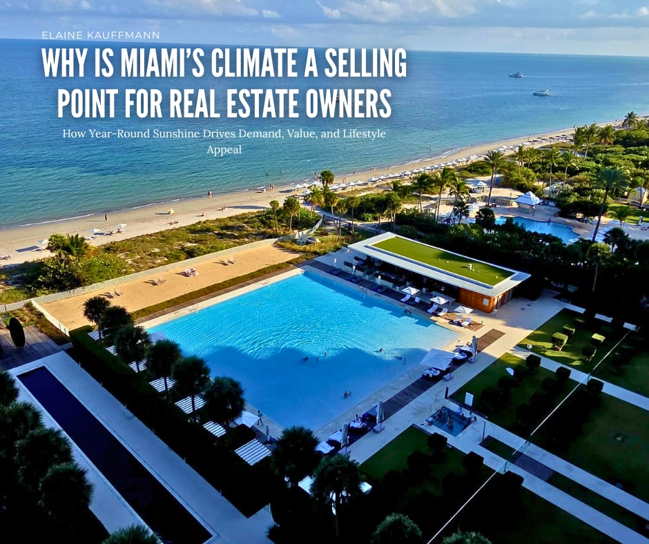 When combined with limited land availability and ongoing luxury development, Miami’s climate continues to support property appreciation and market growth. According to Elaine Kauffmann, climate is not just a lifestyle benefit—it’s a foundational pillar of Miami’s real estate value proposition.